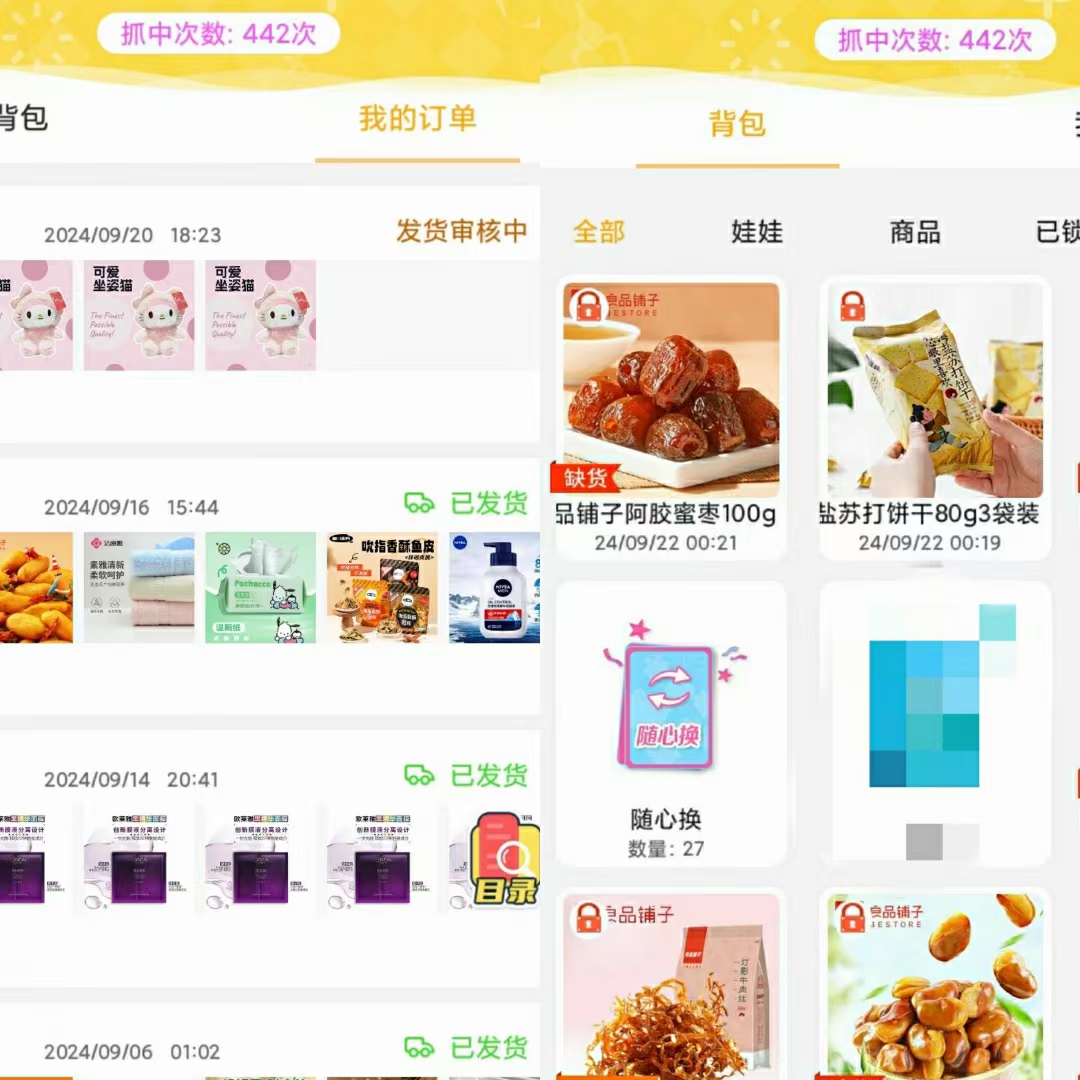 新人免费抓娃娃,得零食,饮料,生活用品❗