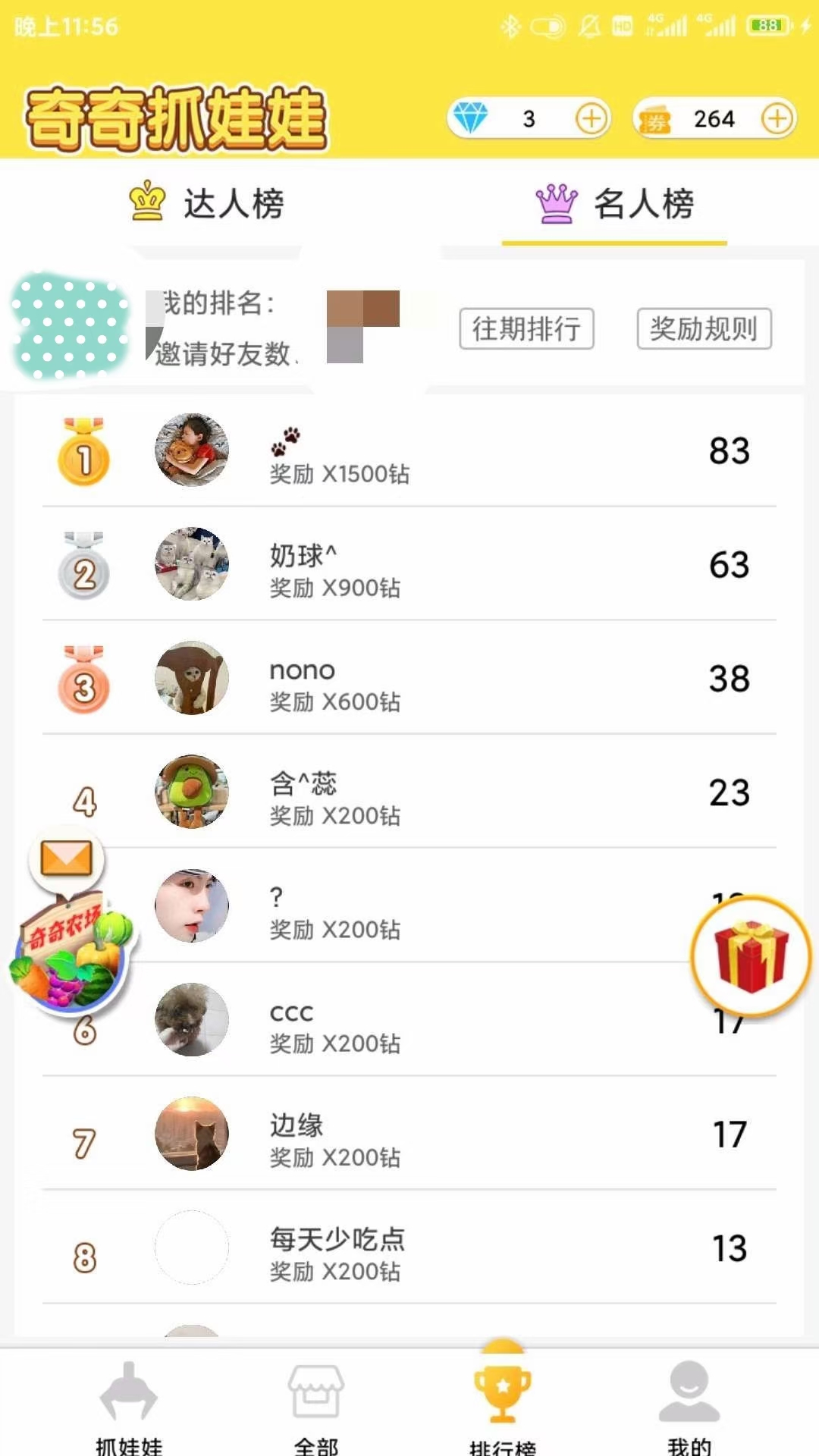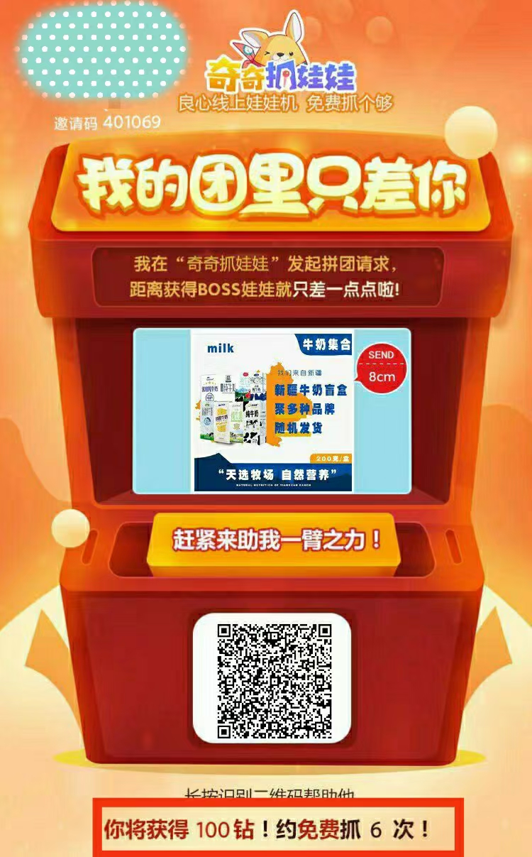 新人得100钻,约免费抓娃娃6次❗